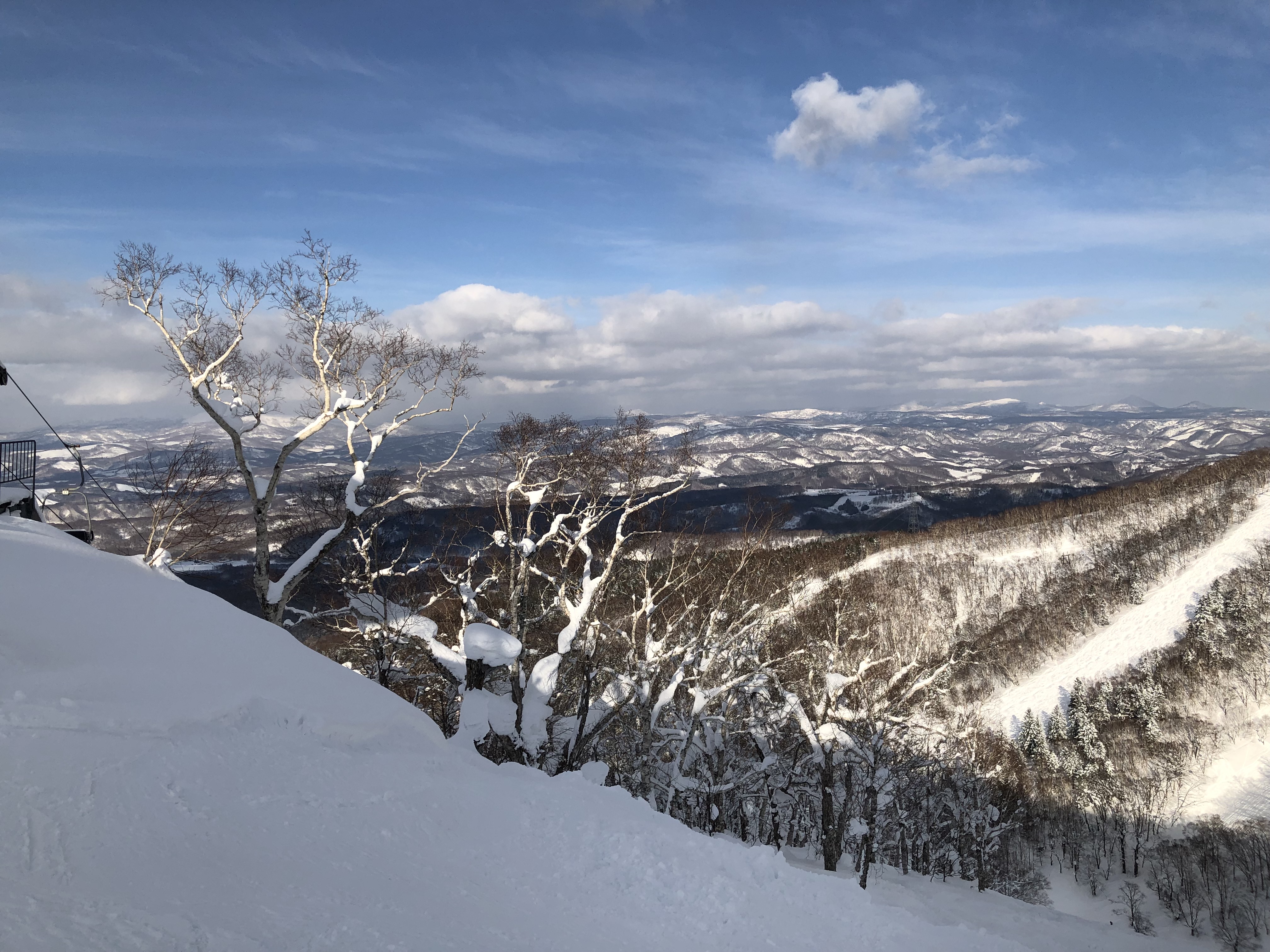 強風でゴンドラはSTOP リフトも数本ストップしていて 動いてるリフトには長い行列。 標高の高いところは雪質が良かった。