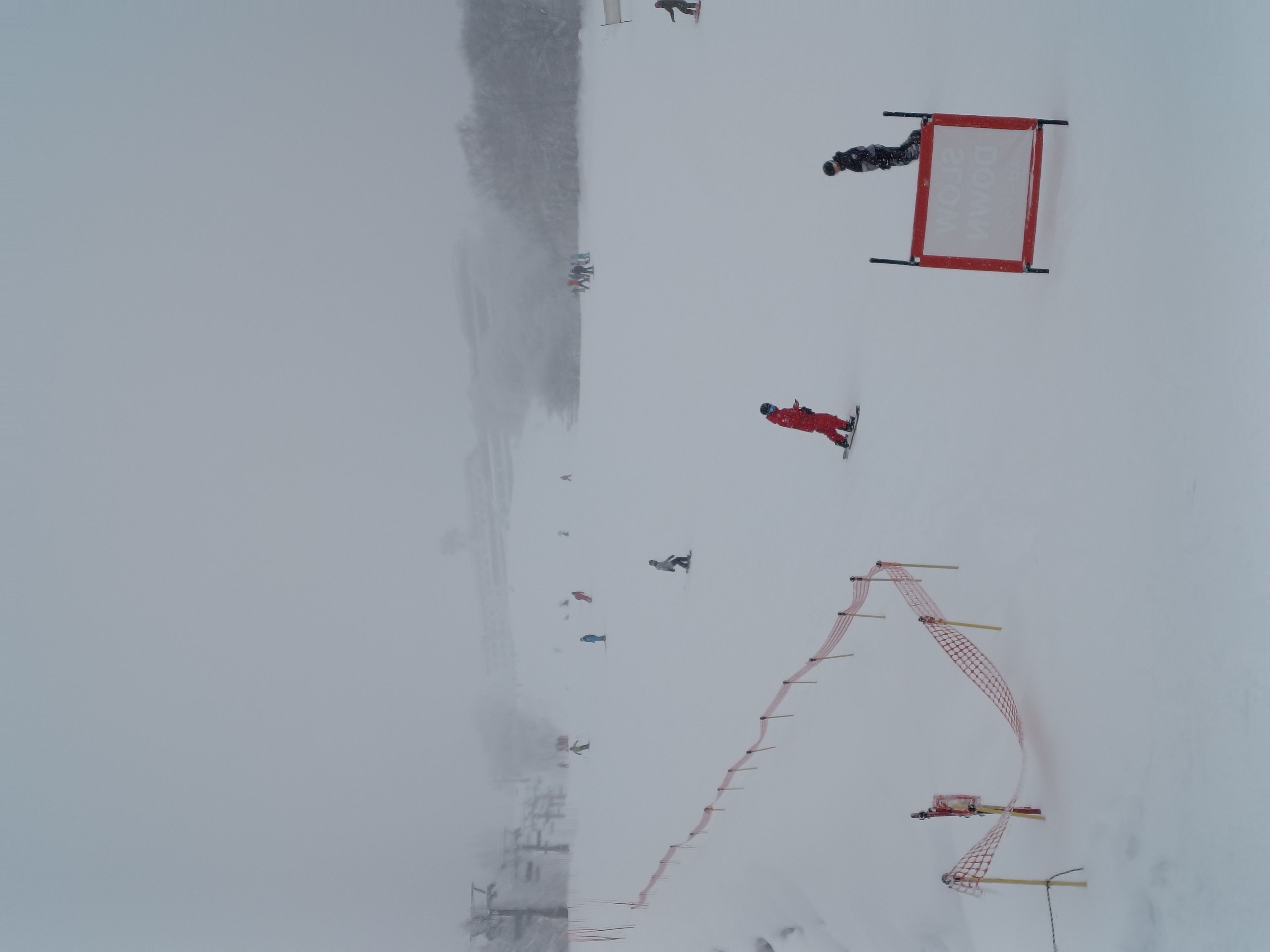ゲレ食の脇の林の中からからボーダー、スキーヤーが飛び出してくる。もちろん、コース外。 少し危ないかな。 ゲレンデのスタッフさん、ここは出てこれない...