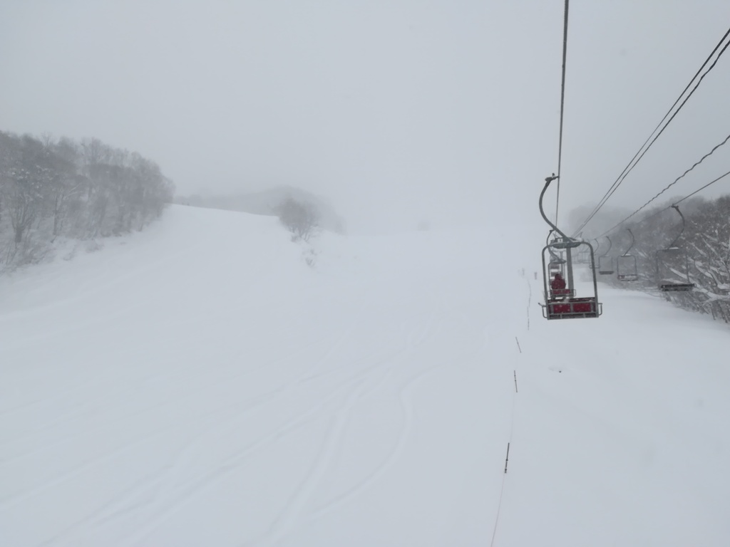 私は圧雪しか滑れないへたくそですので、久しぶりの深雪にかなり苦戦しました。この日は白樺インコース、同アウトコース以外は膝までパウダー。雪質は軽かったですが、パウダー滑走技術のある人以外はスタックからの脱出がしんどかったのではないかと思います。