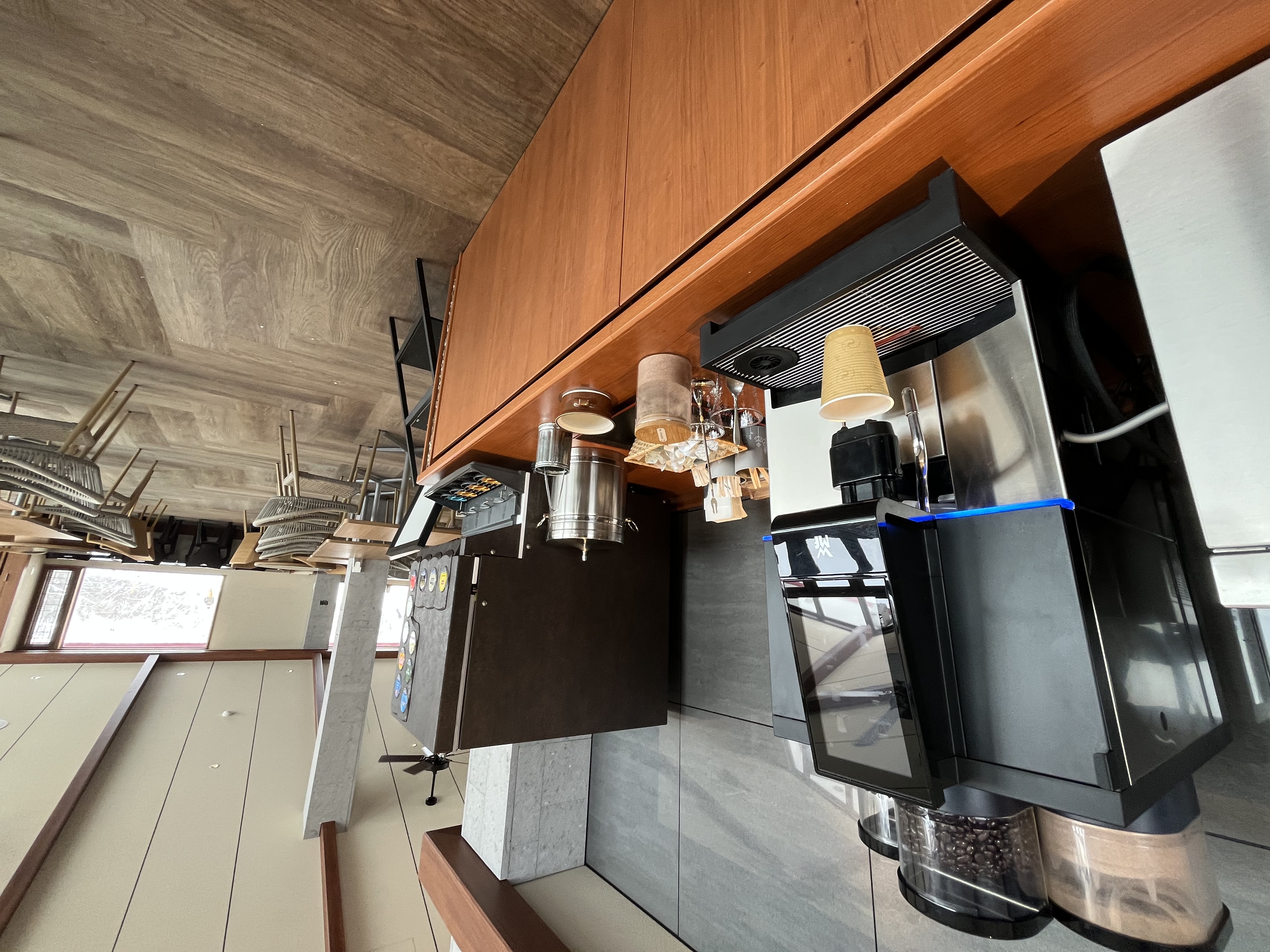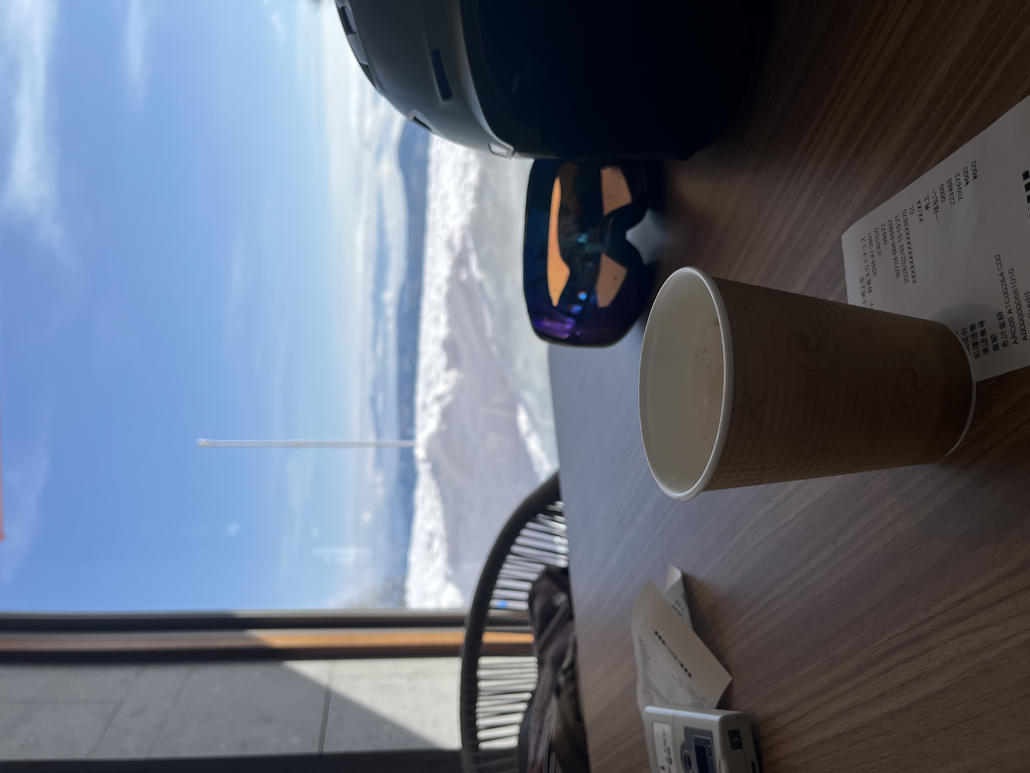 雪が降って寒い日は 早々にスカイテラスに避難して ドリンクバーの カプチーノ! おかわりにココア。