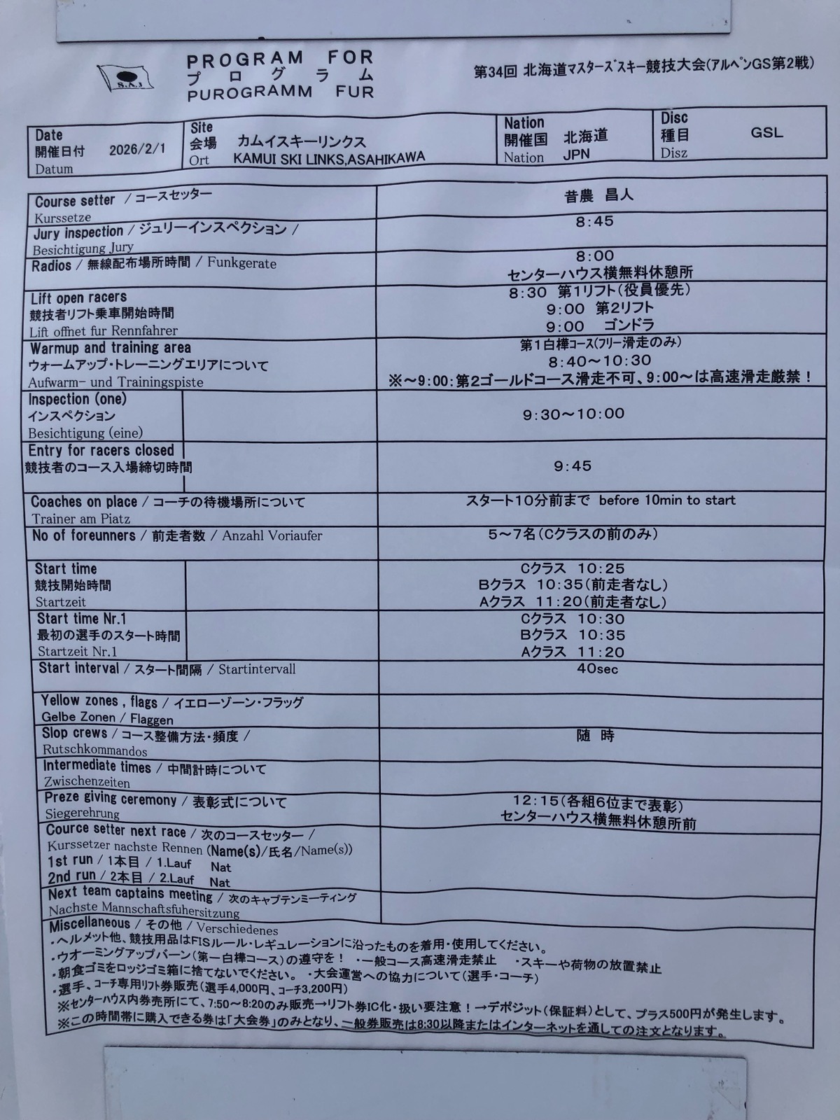 | リフト回数 | 4本 |