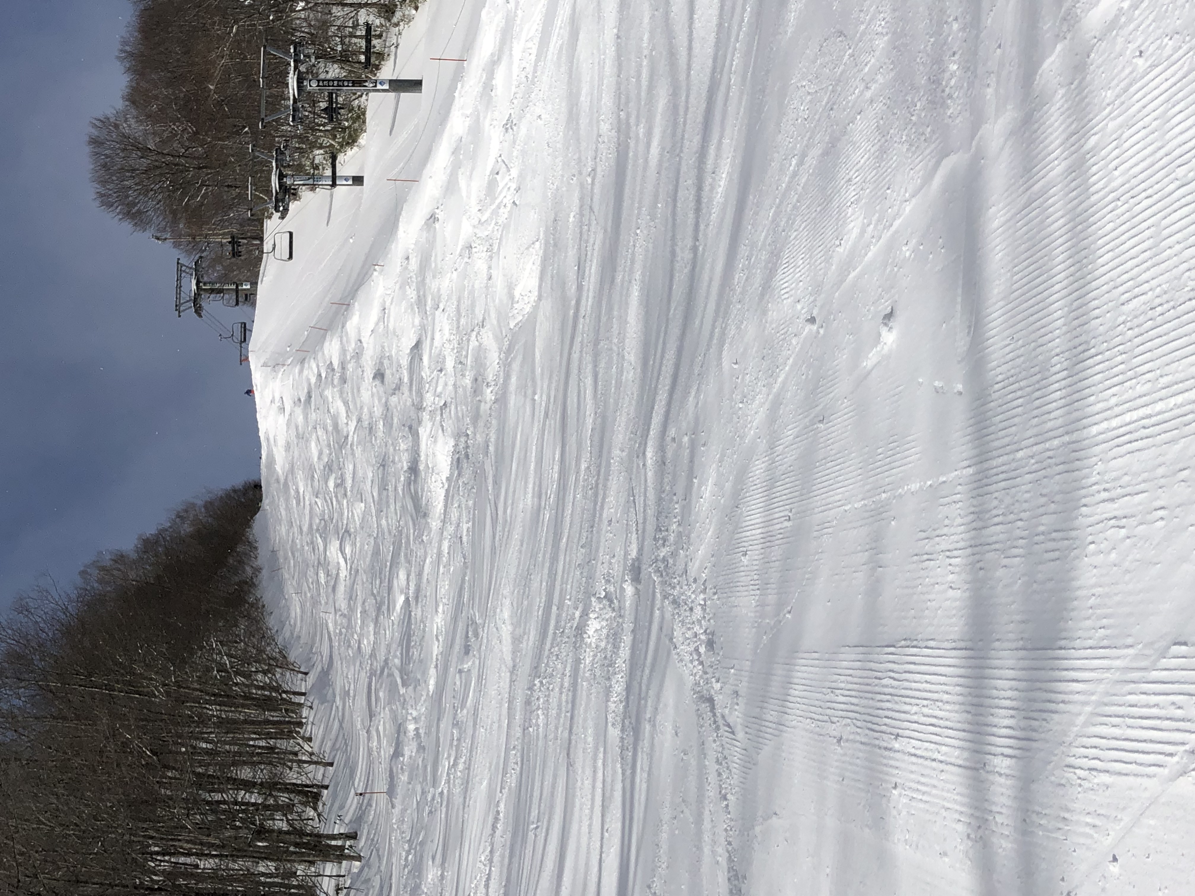平日で人も少なく、コースは圧雪で気持ちいい