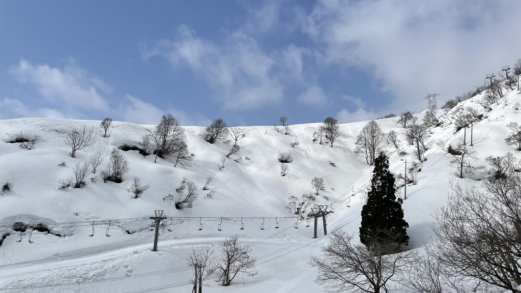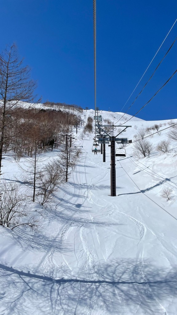 中腹からだと、どこで連れが滑っているのかわかるほど開けているので、家族連れにはよいと思います。