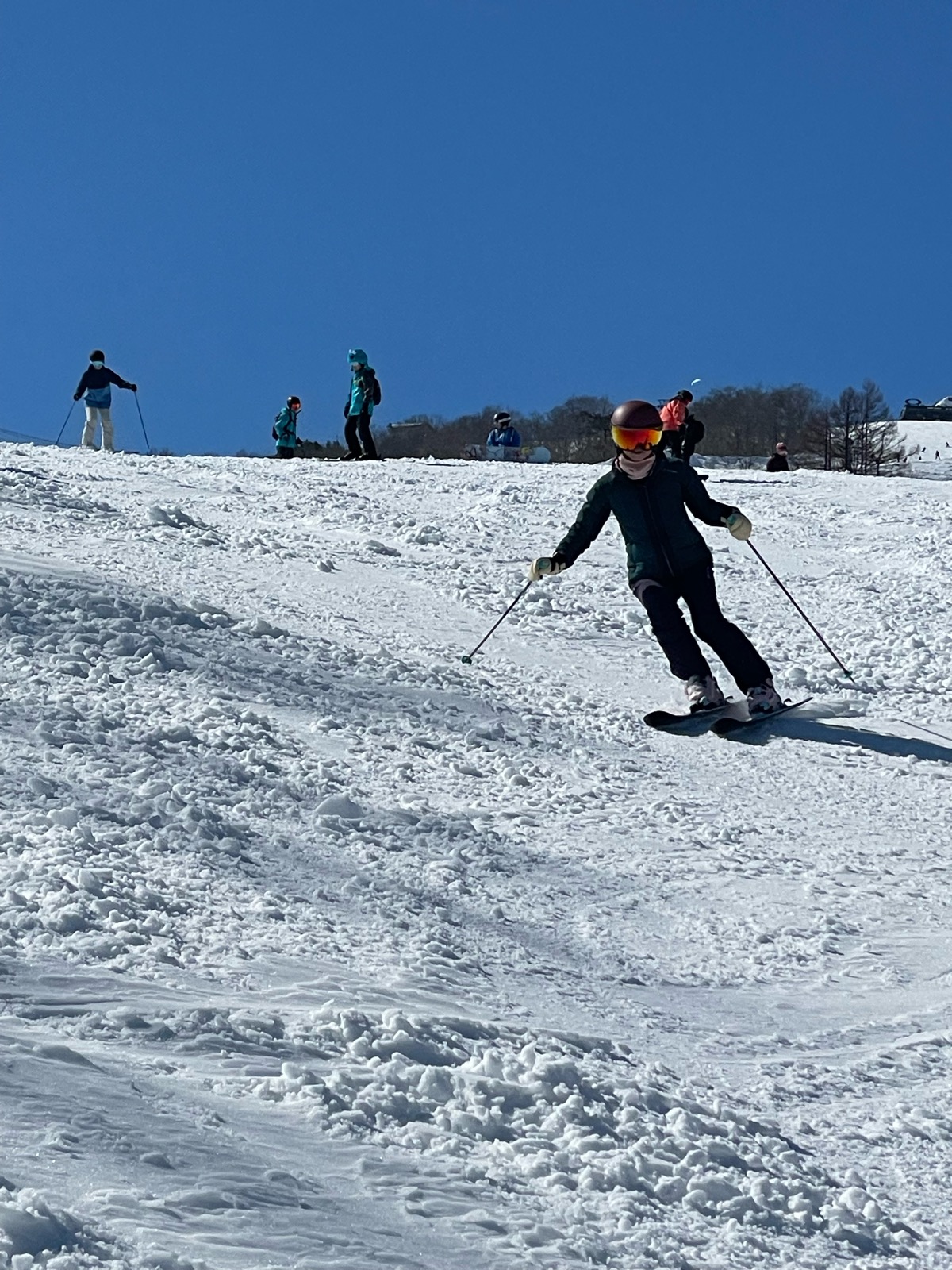 最終日、白樺で2人で右ターンの練習