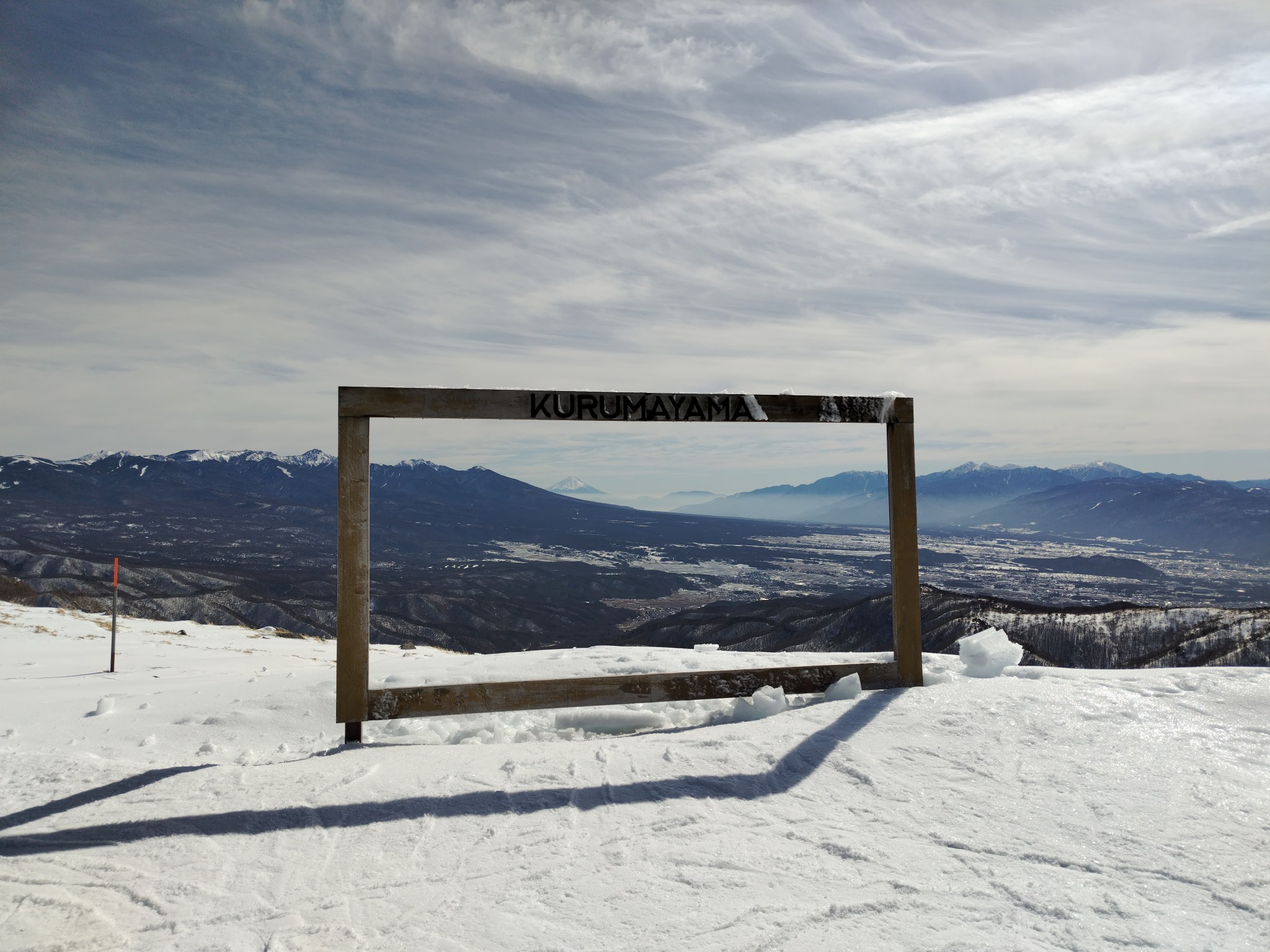 上の方は片栗粉、下の方も雪質はいいしキレイに圧雪されているので、やりたいことができる。雪が薄くて心許ないけど、ビーナスコースは気持ちよくて景色もいいしさいこー!パノラマコースももちろんサイコー!期待以上の車山でした。富士山も見えるし、南・中央・北のアルプスも浅間も蓼科も八ヶ岳も。信州中央部の山景色独り占めできます。