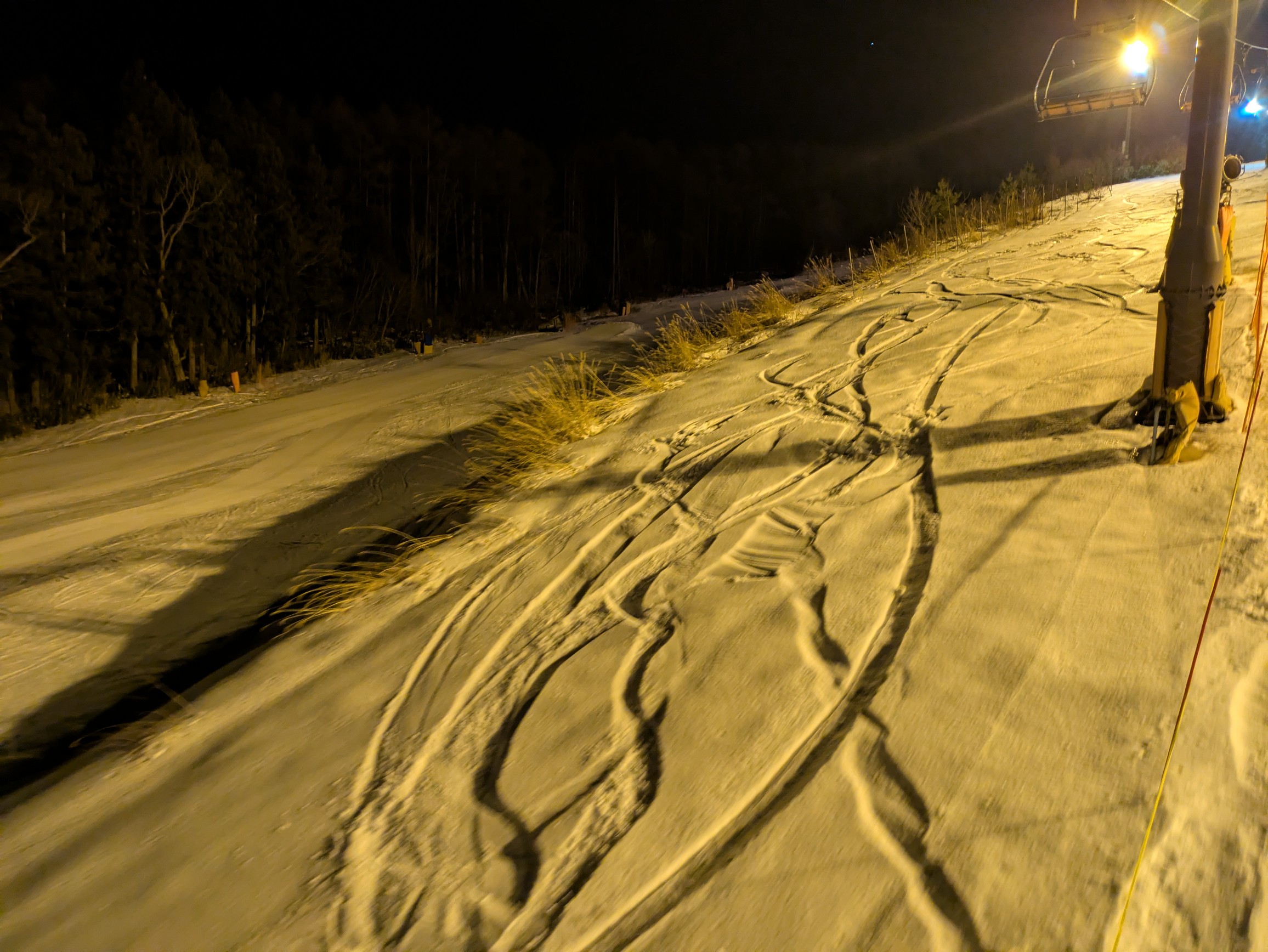 1/18(日)鷲ナイターのスタートです。気温−3℃で日中緩んだ雪が少し固まって最初滑りやすかったけど、徐々にカチカチになりました。とりあえず全面オープンしましたが積雪が心許ないので、明後日からのゴン降りに期待膨らみます。