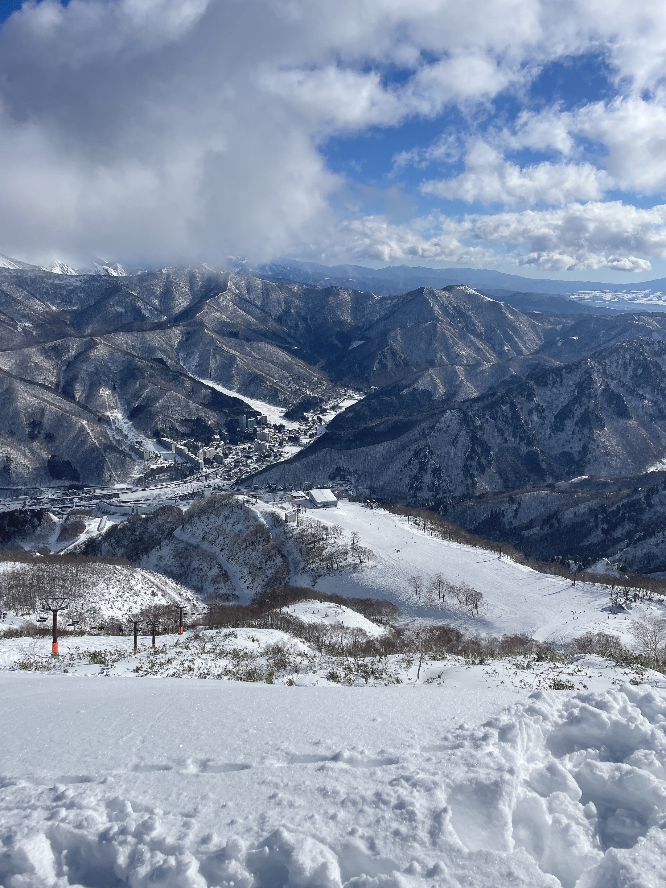 午前中の山頂は止まってしまい厳しかったが午後は何とか止まらず滑れた