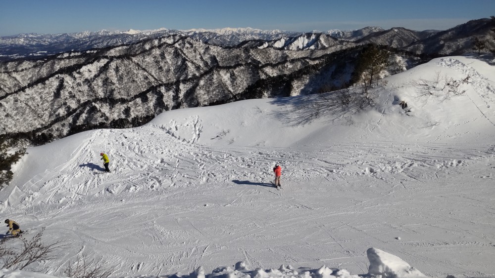 3日前の晴れは登山に使ったので、今日の晴れはスキーをしに今年初の胎内スキー場に来てみました。3連休中晴れるのは今日だけとあって駐車場は第3まで一杯。地元ナンバーばかりですが、外国人や県外勢でごった返すスキー場と違ってリフ待ちもわずかで気軽に滑れるうえコースバリエーションも豊富。バッチリ圧雪してあって朝一番はカリカリで雪質の変化も楽しめました。なんと言っても、快晴で眺望抜群。杁差岳、朝日連峰、淡島、弥彦、佐渡がくっきりみえました。言うことなし。